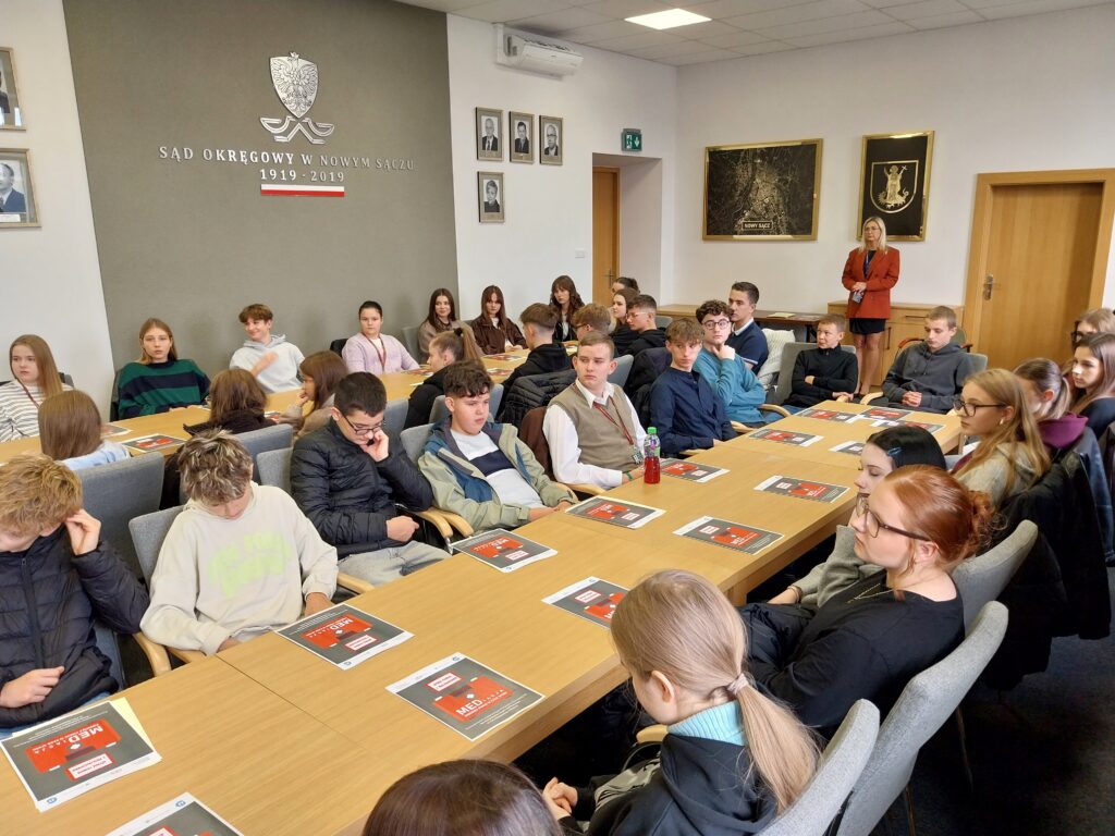 Wizyta ta wpisuje się w prowadzony w naszej szkole autorski projekt edukacji prawniczej „Prawo w praktyce” realizowany we współpracy z Sądem Okręgowym w Nowym Sączu i Sądem Rejonowym w Nowym Sączu.