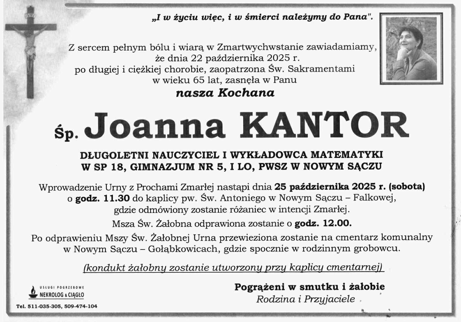 Z głębokim smutkiem i żalem zawiadamiamy, że w dniu 22 października 2025 roku zmarła