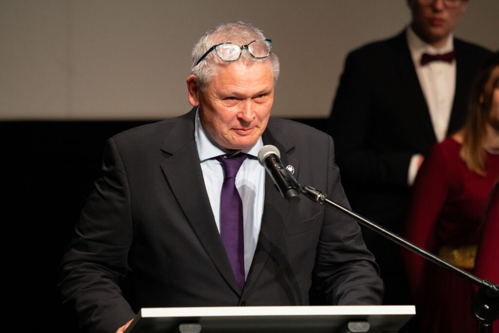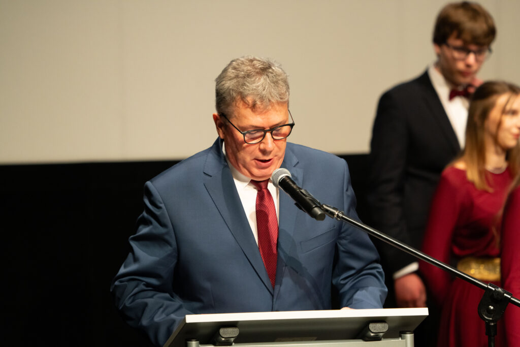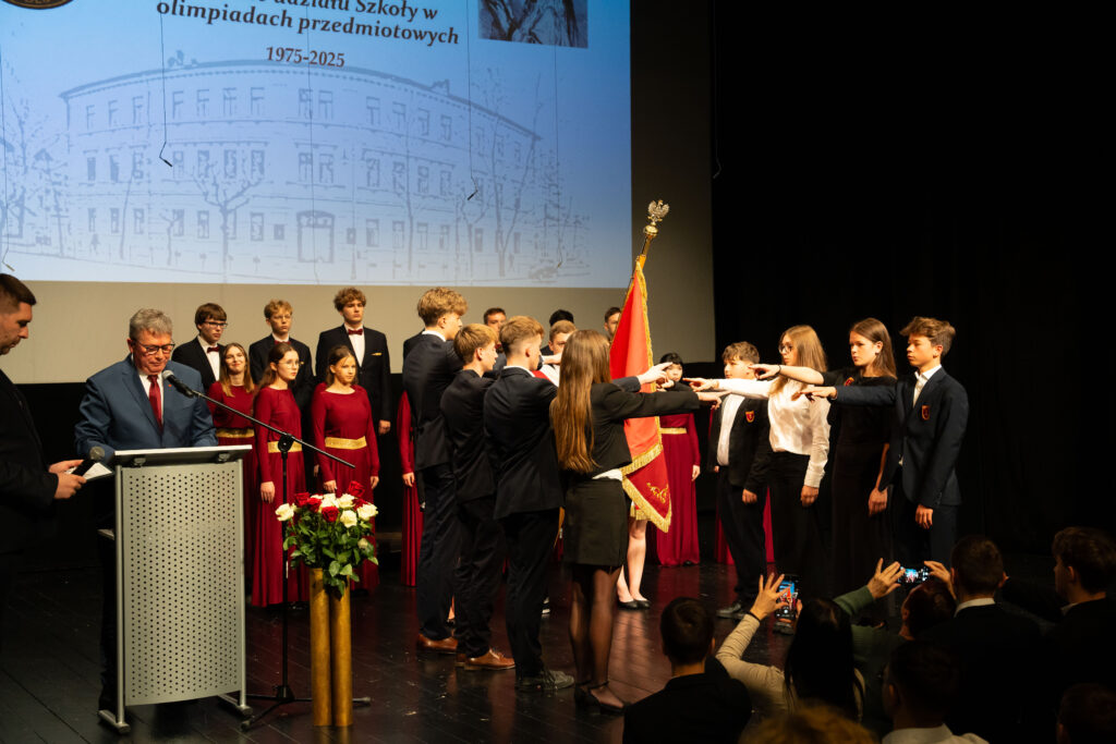 W części jubileuszowej mgr Piotr Rychlewski przybliżył postać patrona szkoły – Jana Długosza – oraz historię nadania jego imienia szkole oraz znaczenie patrona dla kolejnych pokoleń uczniów. Z kolei mgr Bernadeta Odrzywolska, w związku z jubileuszem 50-lecia udziału szkoły w olimpiadach przedmiotowych, przedstawiła dorobek naukowy uczniów oraz wspomniała licznych laureatów i finalistów olimpiad z minionych lat. Co ważne, podczas uroczystości obecny był również dr Tomasz Podgórski – laureat I Olimpiady Historycznej i absolwent I LO – który także zabrał głos, dzieląc się wspomnieniami z lat szkolnych oraz refleksją o znaczeniu pasji w rozwoju młodych ludzi.