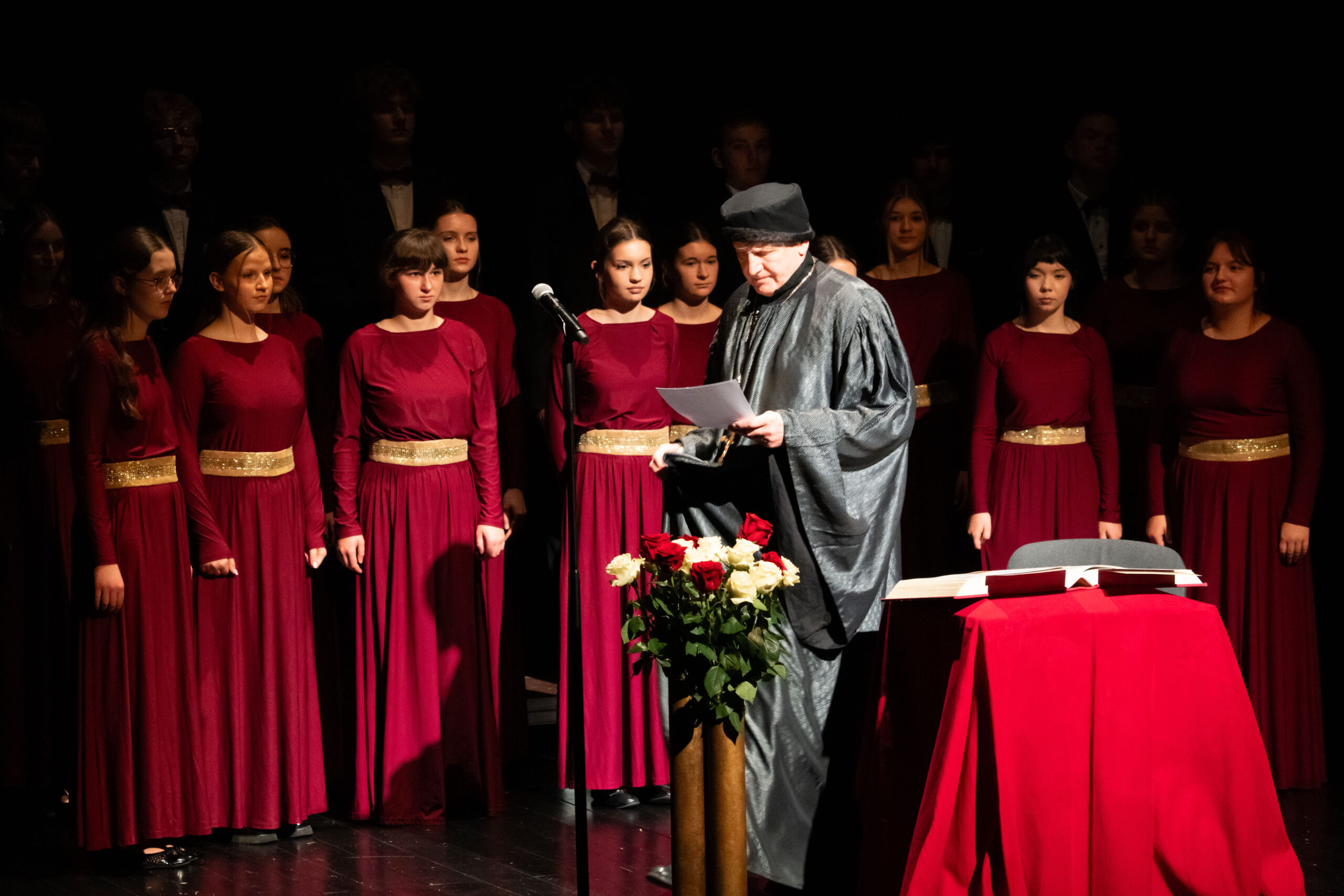 Nie zabrakło również wyjątkowej oprawy artystycznej. Uczniowie klas 2e, 3f i 4c, przygotowani przez mgr. Grzegorza Rapciazaprezentowali spektakl słowno-muzyczny„By czas nie zaćmił oraz niepamięć” poświęcone patronowi szkoły. Sam mgr Michał Zacłonawcielił się w rolę Jana Długosza, odczytując w trakcie widowiska fragmenty jego słynnego dzieła „Roczniki, czyli kroniki sławnego Królestwa Polskiego”.