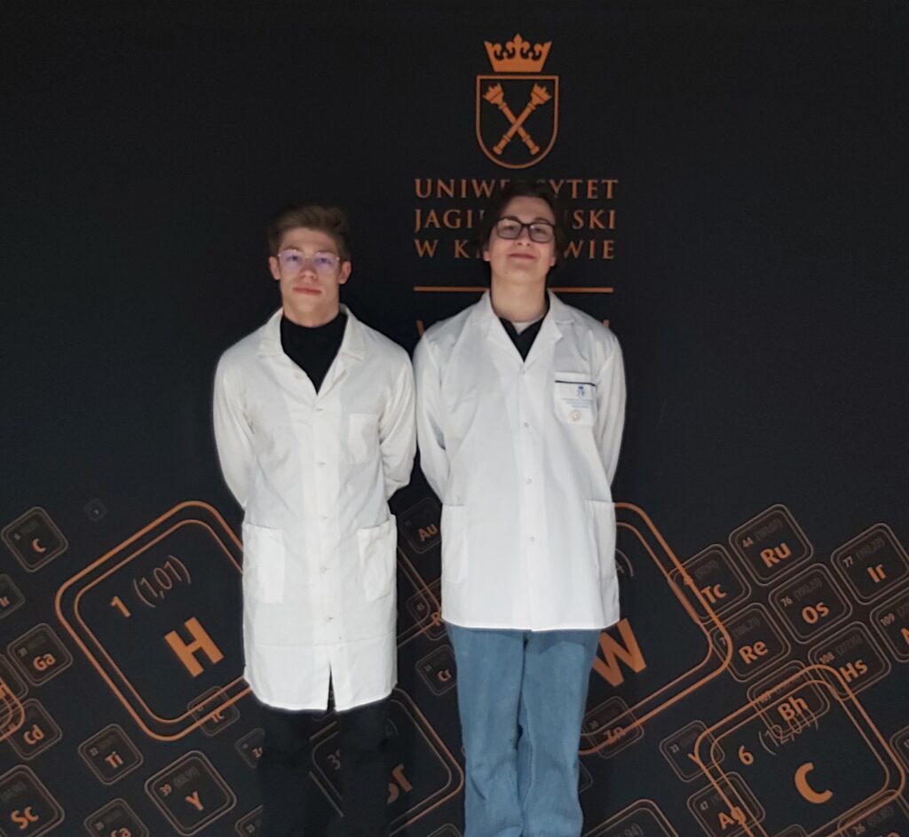 Z przyjemnością informujemy, że uczniowie naszej szkoły Mateusz Mółka– kl 4b oraz Artur Dorula– kl 4d wzięli udział w etapie okręgowym 72. Olimpiady Chemicznej, który odbył się w dniach 16–17 stycznia na Wydziale Chemii Uniwersytetu Jagiellońskiego w Krakowie