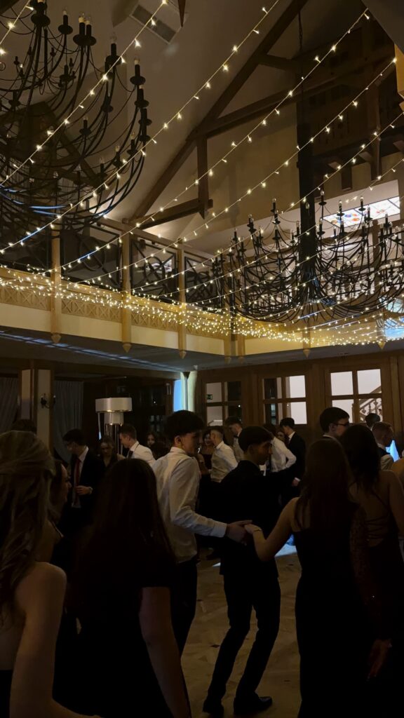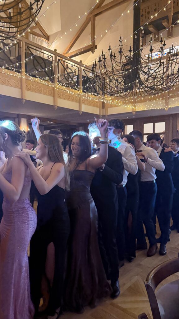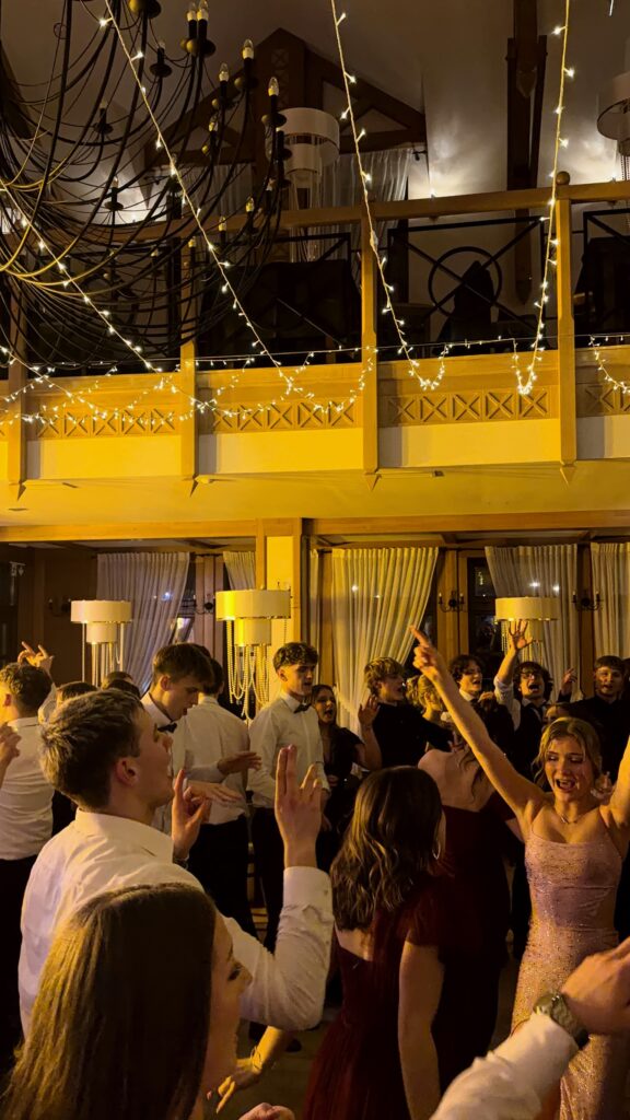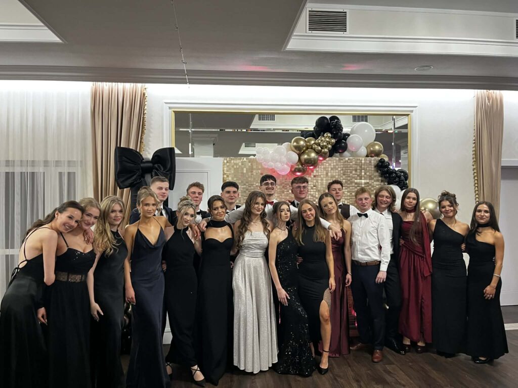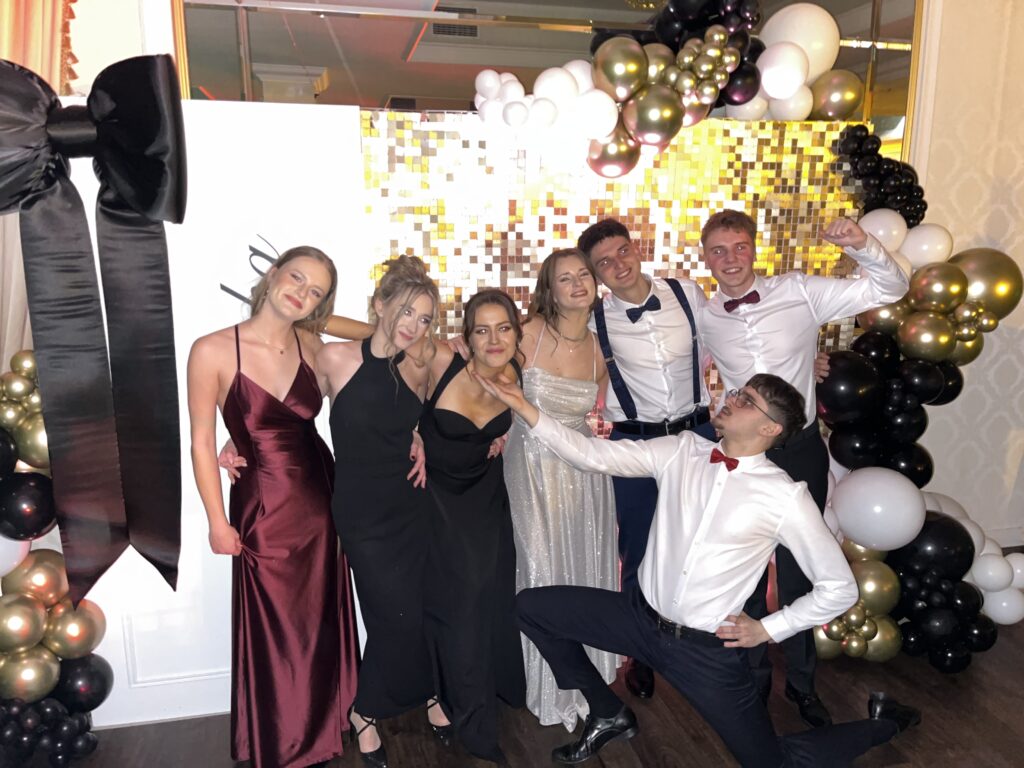 Po części oficjalnej parkiet szybko wypełnił się tańczącymi maturzystami. Starannie dobrana muzyka, energia i swobodna atmosfera sprawiły, że zabawa trwała do późnych godzin nocnych, a radość i entuzjazm uczestników doskonale oddawały wyjątkowy charakter tego studniówkowego wieczoru klasy 4b, wpisując go w ciąg kolejnych wydarzeń tegorocznego sezonu studniówek.