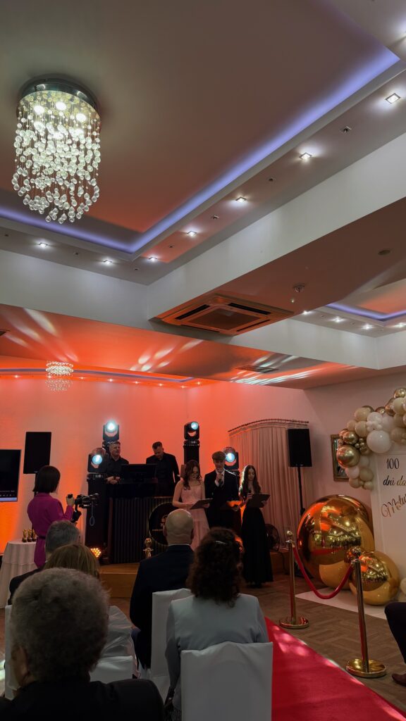 Po oficjalnych akcentach nadszedł czas na swobodną zabawę. Parkiet szybko wypełnił się tańczącymi maturzystami, a DJ zadbał o różnorodny repertuar muzyczny oraz liczne zabawy integracyjne, które jeszcze bardziej podkręciły energię wieczoru. Niezapomniane wrażenia sprawiły, że studniówka klasy 4a stała się kolejnym pięknym rozdziałem tegorocznego sezonu studniówek.
