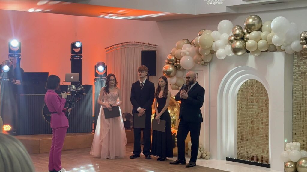 Szczególnym momentem wieczoru był przygotowany przez uczniów film, łączący zdjęcia i nagrania z całego okresu nauki w liceum, a także kadry z dzieciństwa. Prezentacji towarzyszyły szczere emocje, podobnie jak skierowane w dalszej części wieczoru podziękowania dla nauczycieli – za wsparcie, cierpliwość, dobre słowo i wspólnie spędzone lata.