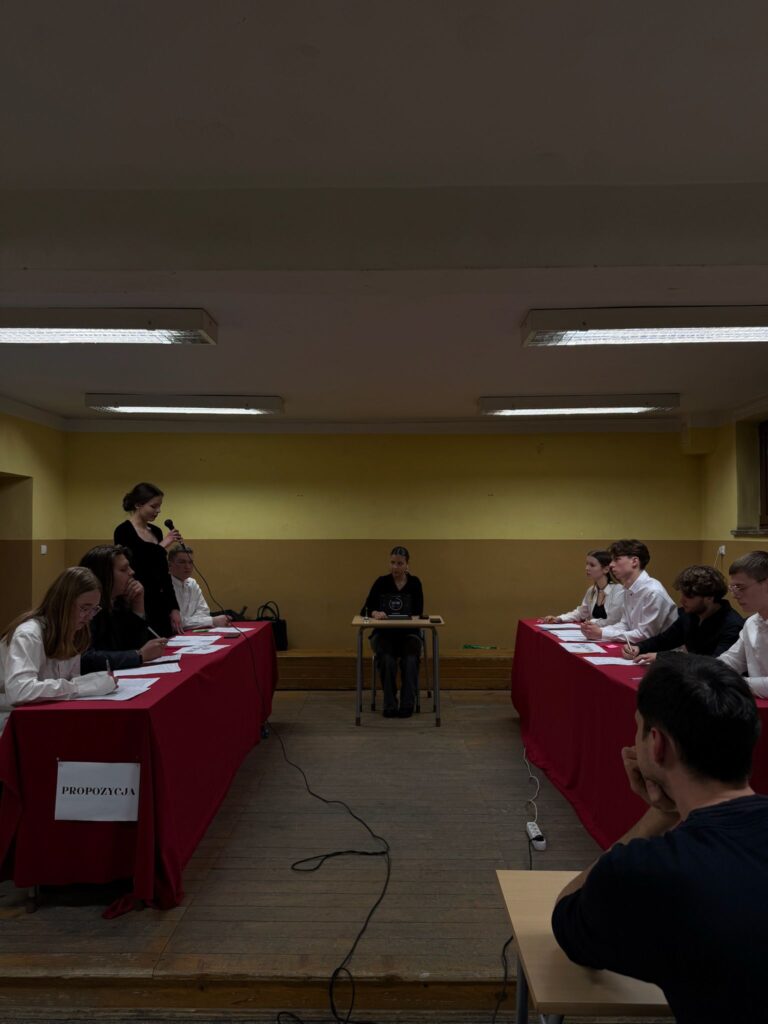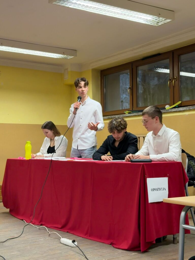 Stronę propozycji reprezentowała klasa 3b, natomiast przeciw tezie wystąpiła klasa 3a.