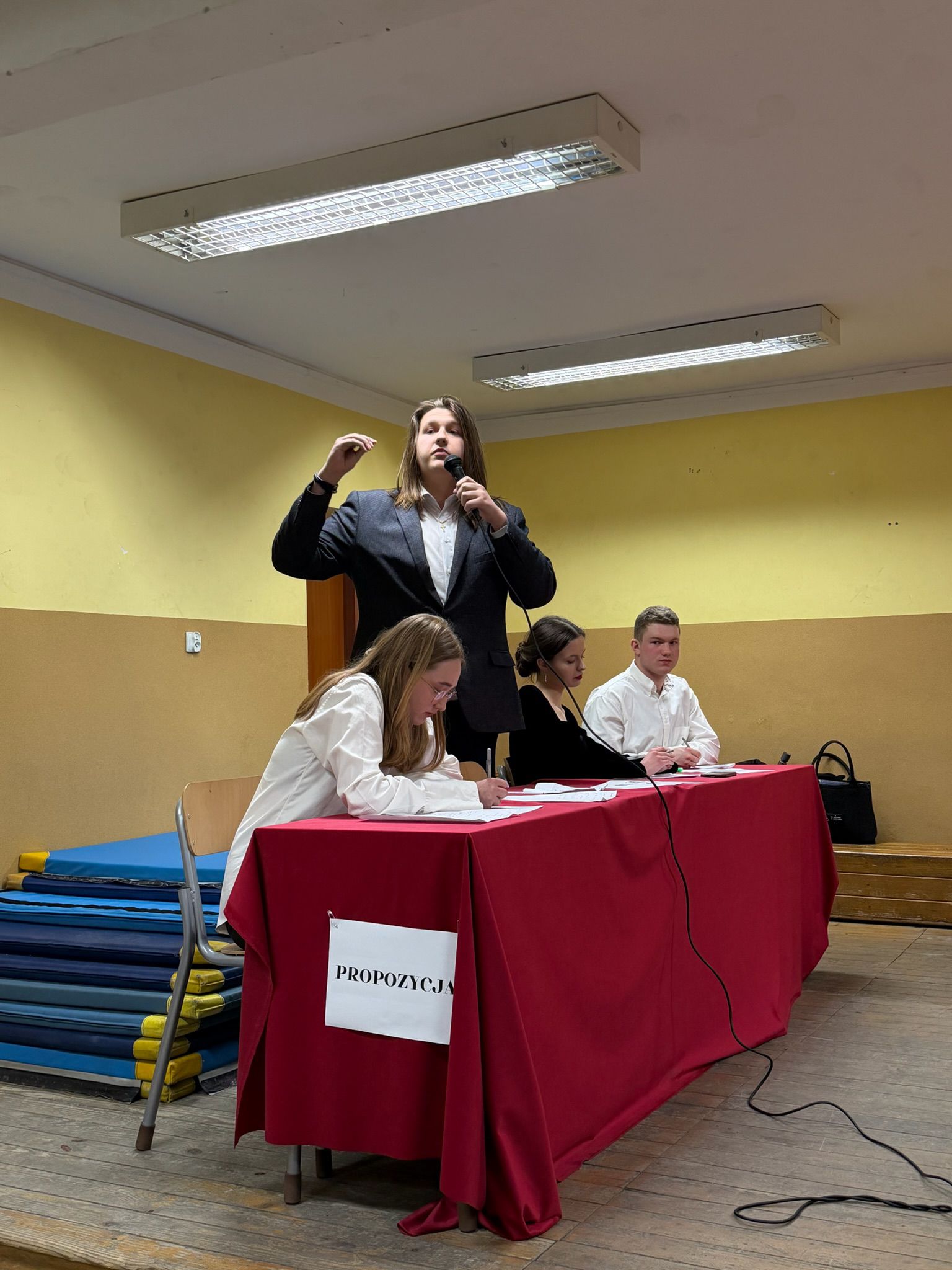 Stronę propozycji reprezentowała klasa 3b, natomiast przeciw tezie wystąpiła klasa 3a.