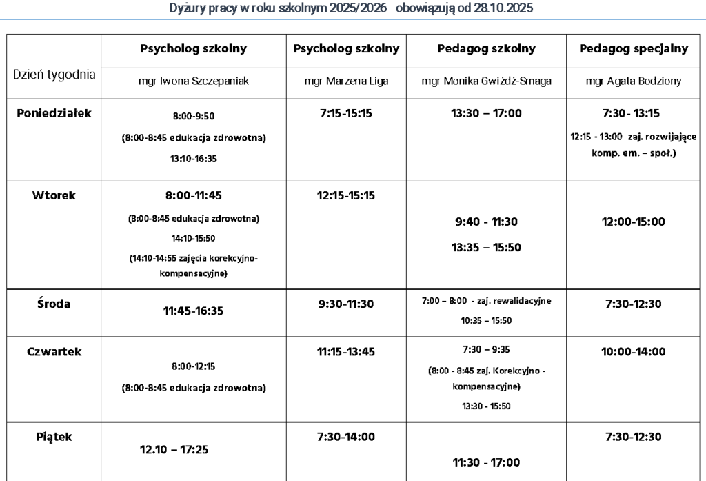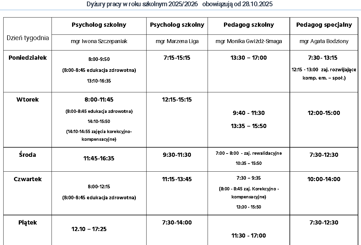- POMOC PSYCHOLOGICZNO- PEDAGOGICZNA DLA UCZNIÓW, RODZICÓW, WYCHOWAWCÓW I NAUCZYCIELI